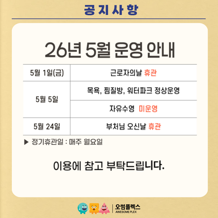 [어린이날 행사 안내] 오썸플렉스 워터파크에서 만나는 무료입장 & 폐자원 게임 이벤트!