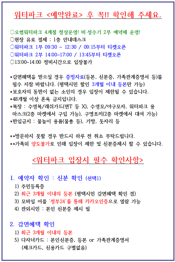 [공지사항]_워터파크 입장시 필수 확인사항_방문시 먼저 확인해 주세요~