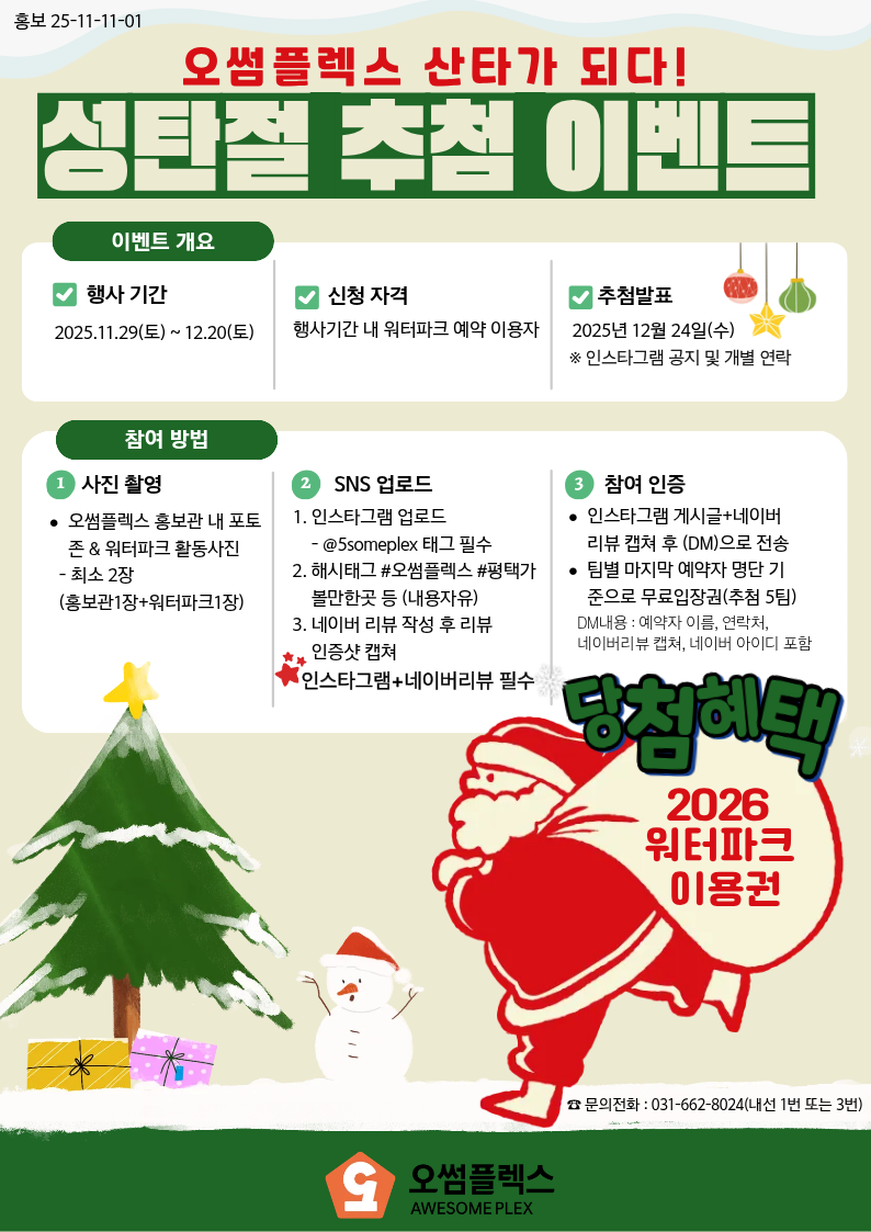 “오썸플렉스가 산타가 되다! 성탄절 산타 선물 추첨 이벤트”