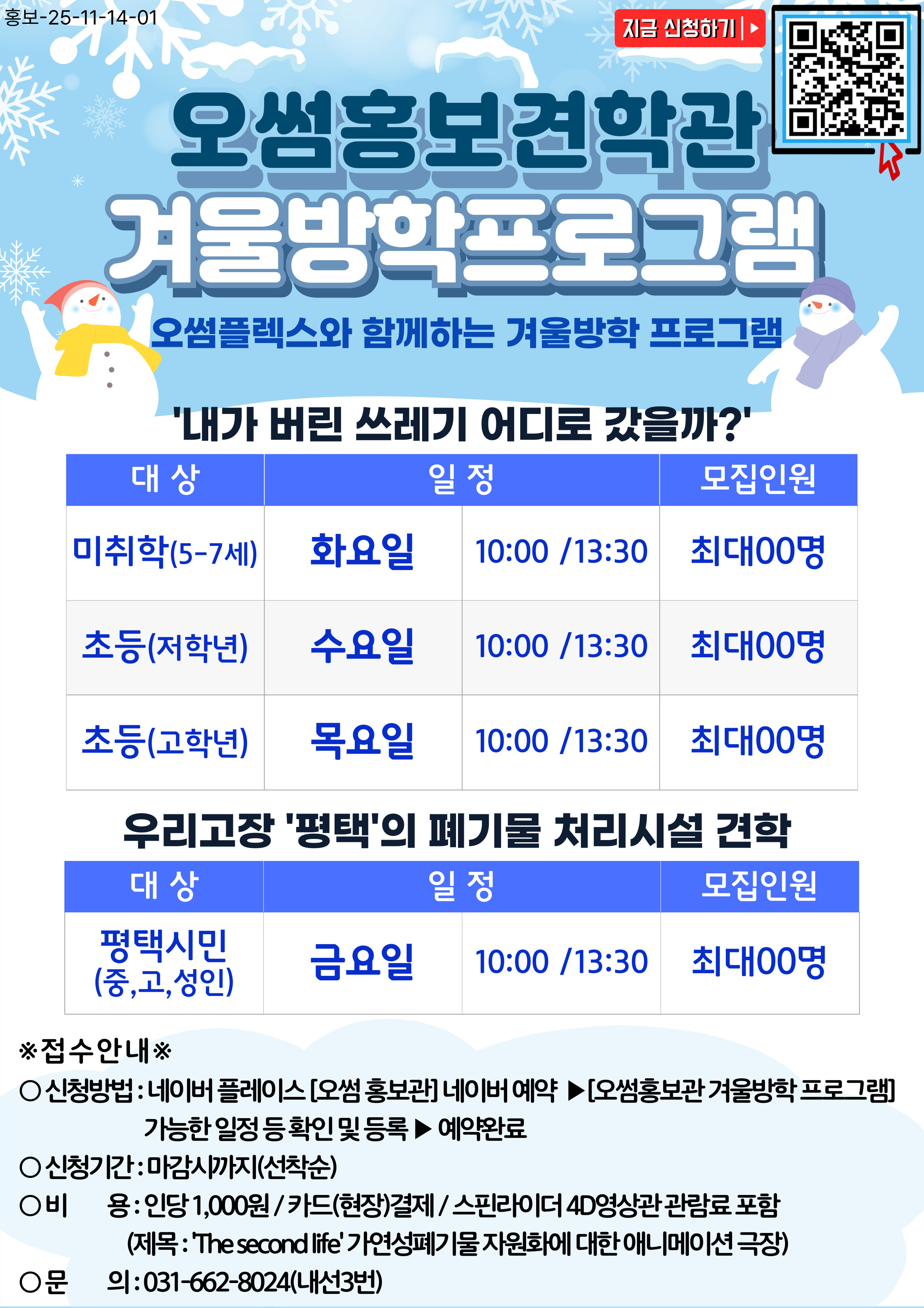 이번 겨울, 오썸홍보견학관에서 "배움"과 "즐거움"을한 번에! 지금 바로 예약하세요 :)