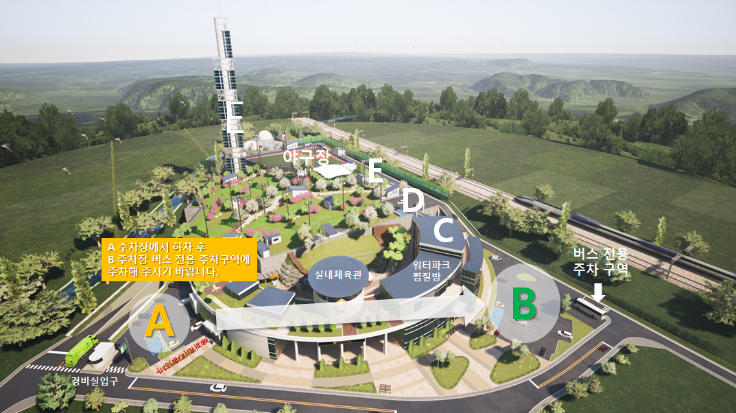 ※ 홍보관견학 단체 버스로 오시는 경우 A 주차장에 학생들 하차 후 B 주차구역으로 주차 하시면 이용이 편리합니다.