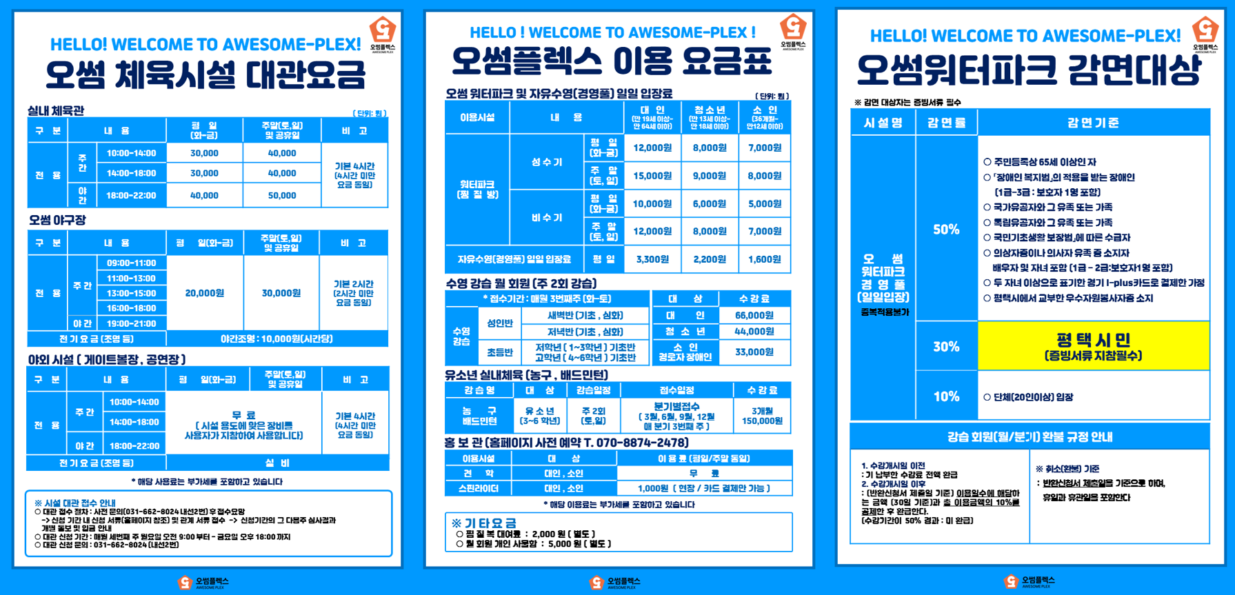 해당 조례 개정에 따라 오썸플렉스 이용요금이 부분적으로 변경되었음을 알려드립니다.