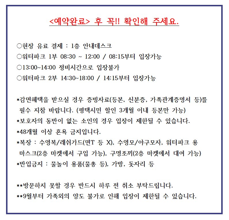 [공지사항]_워터파크_예약완료 후 주의사항_꼭 확인해 주세요.